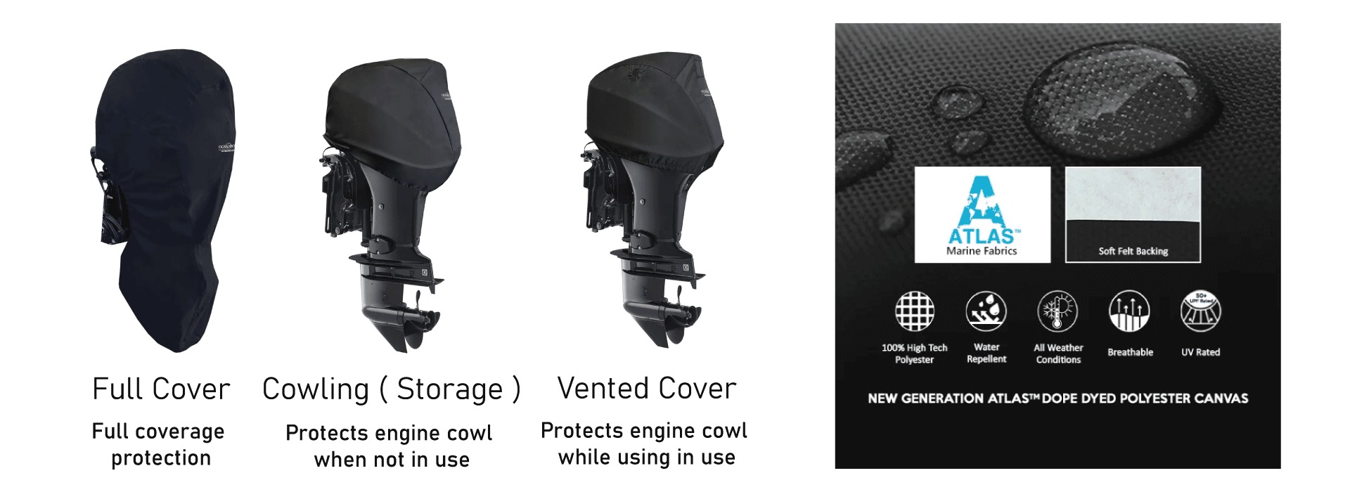 Coverworld offer a range of Custom Fit Aftermarket Motor Covers for Evinrude® Outboard Motors the range includes covers for the Cowling part of the motor which are vented and designed for use whilst the motor is running, or we have the full leg covers for the half motor covers, all of which offered a great fit, in a quality marine canvas with a soft lining. If you cannot find your exact motor listed we have universal fit motor covers available for all other Evinrude® boat engines